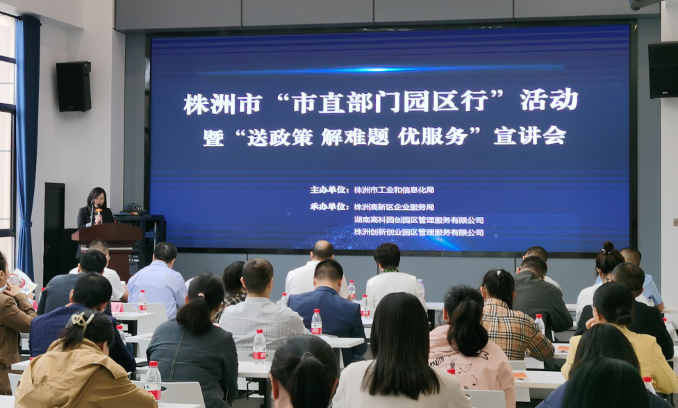 为持续优化营商环境,主动靠前助企解难纾困,引导企业更好地知晓政策、消化政策、用好政策,5月23日上午,市工信局联合市发改委、市人社局、市政府金融办、国网公司、农业银行开发区支行、工商银行株洲分行等单位在动力谷园区人力资源产业园1楼路演厅开展“送政策解难题优服务”宣讲会。会议采用“线上直播+线下宣讲”同步进行的方式进行政策讲解,40余家企业代表现场参加,100多人同步观看。