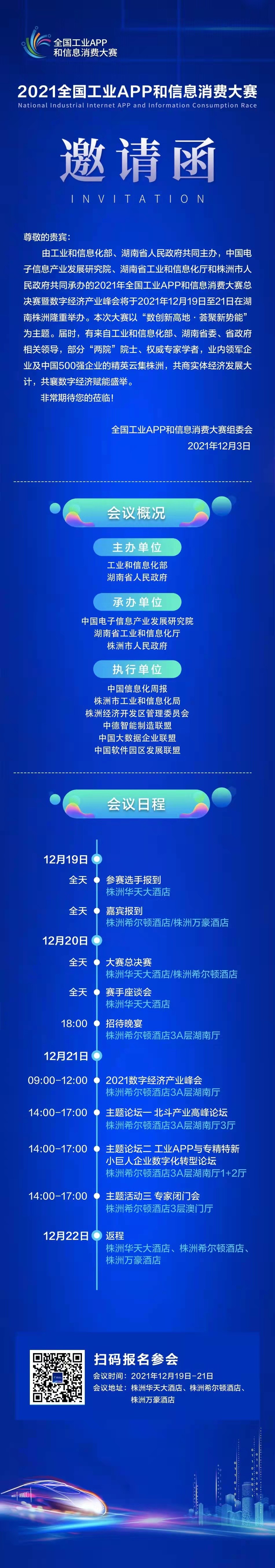 2021年全国工业App和信息消费大赛总决赛将于12月19日至21日在株洲举行国家顶尖赛事 数字经济盛宴邀您见证!扫描图片下方二维码报名参加