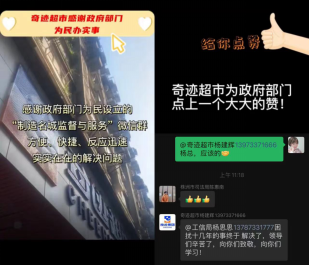 4月8日,奇迹超市杨先生通过“制造名城”监督与服务微信群反馈困扰了他们十几年的问题终于解决了。并制作小视频表达对政府部门的感谢,对“制造名城”监督与服务微信群所做工作的肯定。