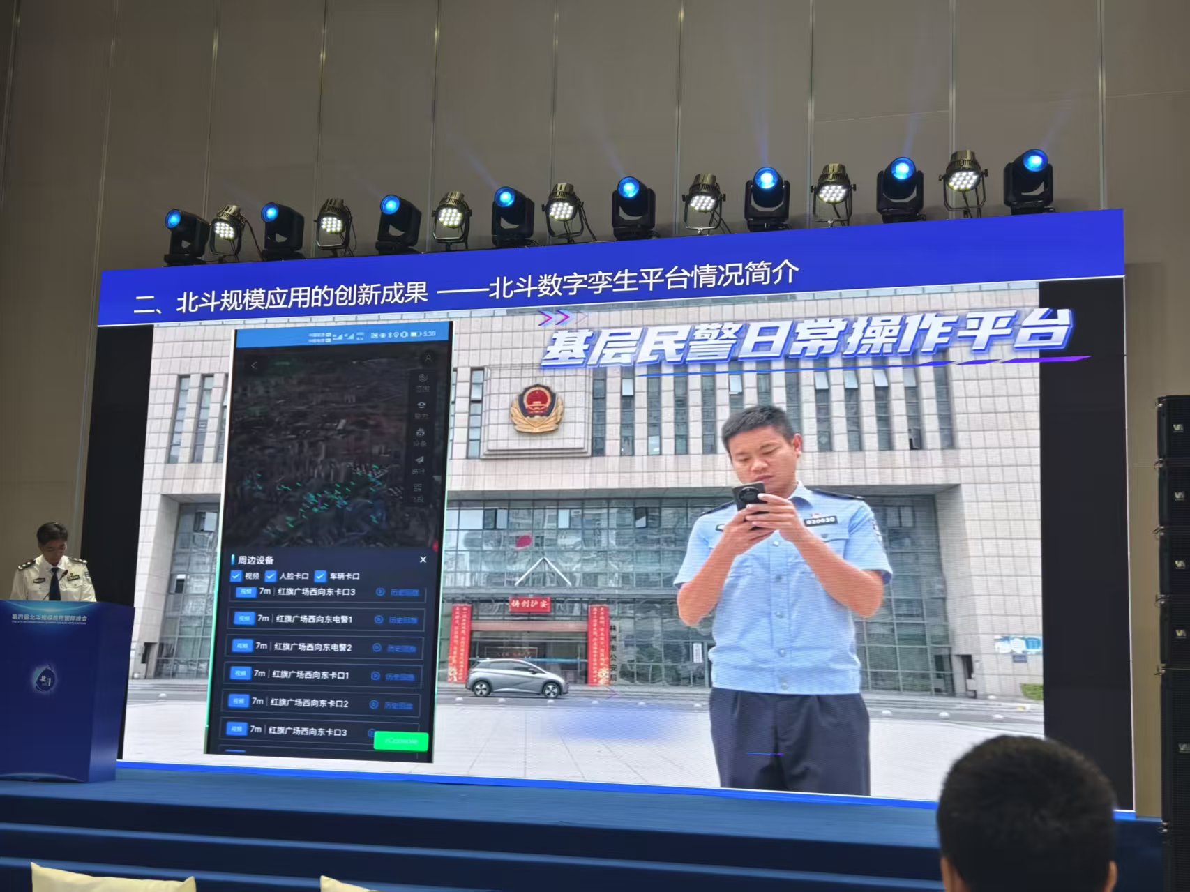 现场展示视频显示:在株洲市公安局指挥中心的大屏幕上,实时跳动的警情数据与三维实景地图无缝融合。基于北斗高精定位和地基增强技术,株洲公安构建“135”快速反应圈,能让民警在1分钟内接收警情、3分钟内抵达现场。