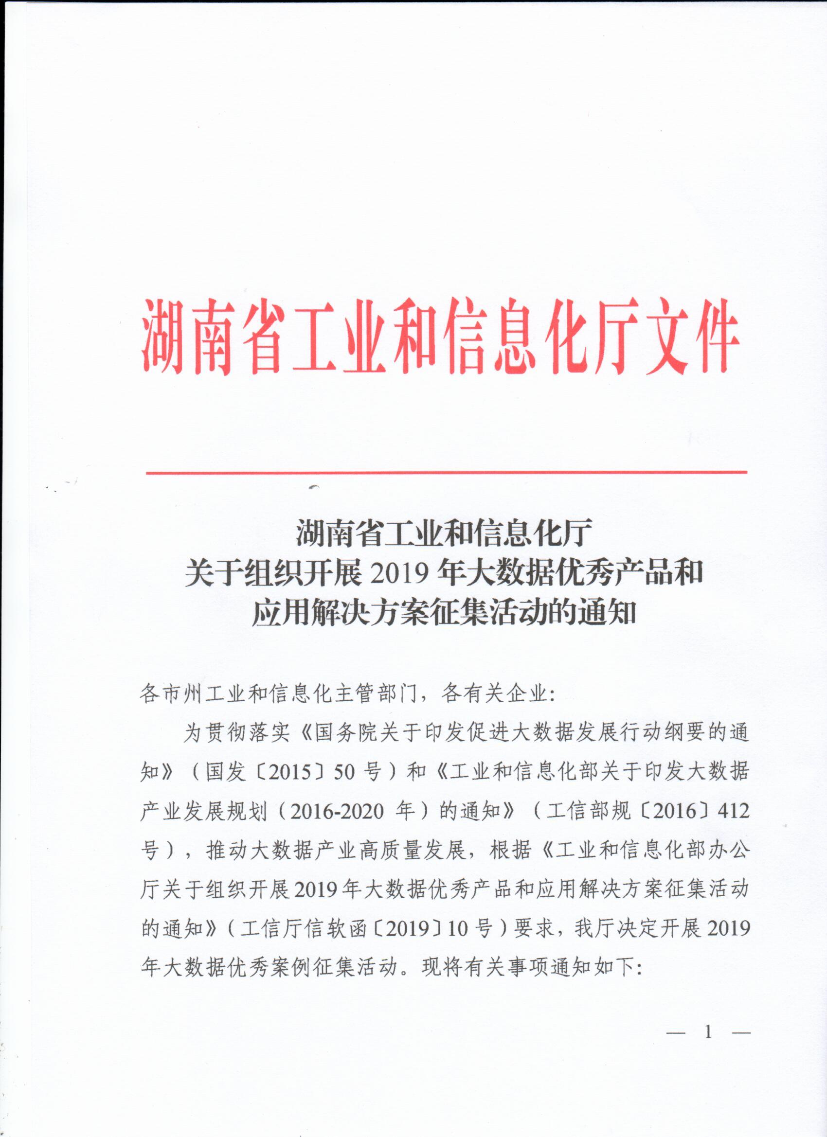 现将省工信厅《关于组织开展2019年大数据优秀产品和应用解决方案征集活动的通知》转发给你们,请积极组织报名。