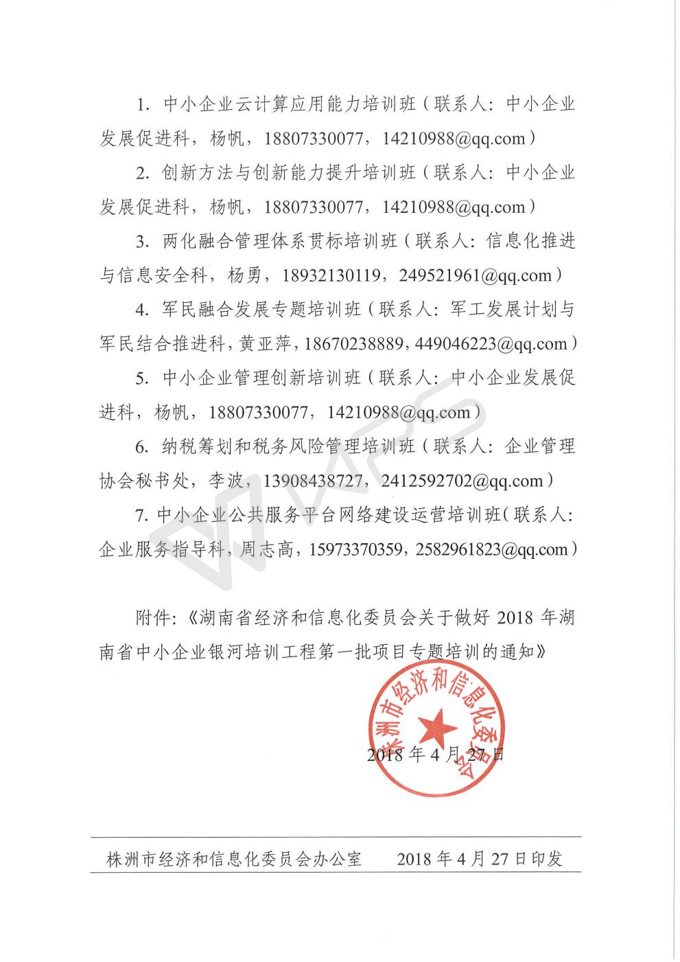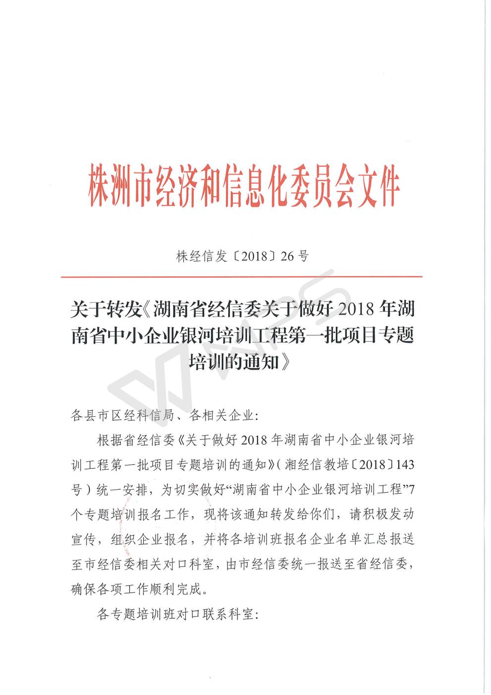 关于转发《湖南省经信委关于做好2018年湖南省中小企业银河培训工程第一批项目专题培训的通知》