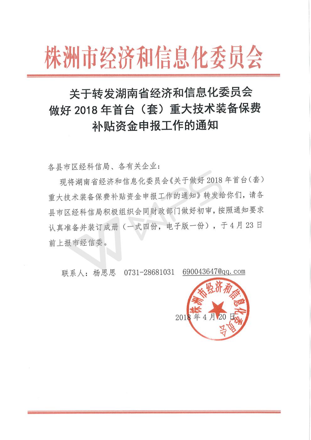 湖南省经信委关于做好2018年首台(套)重大技术装备保费补贴资金申报工作的通知