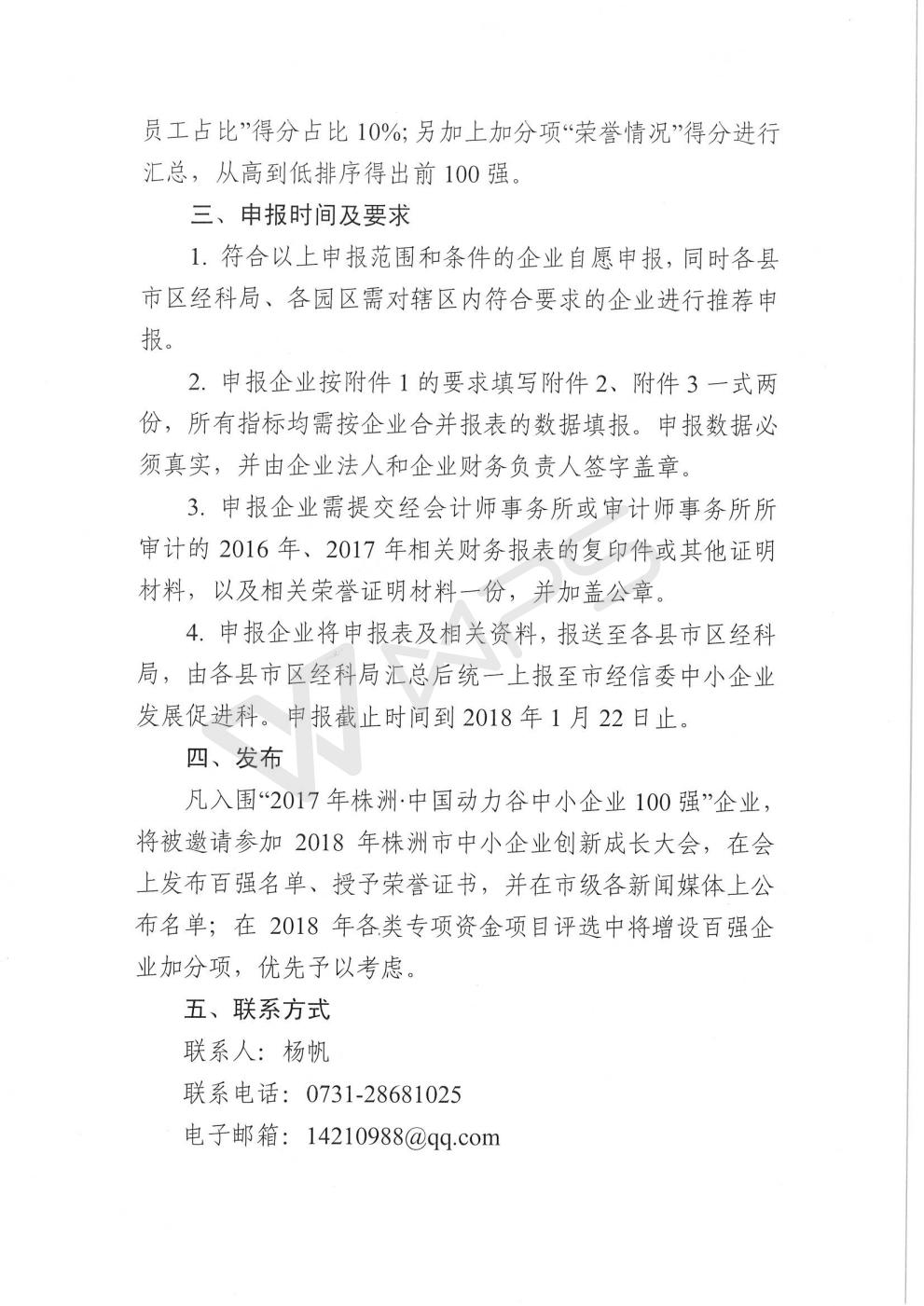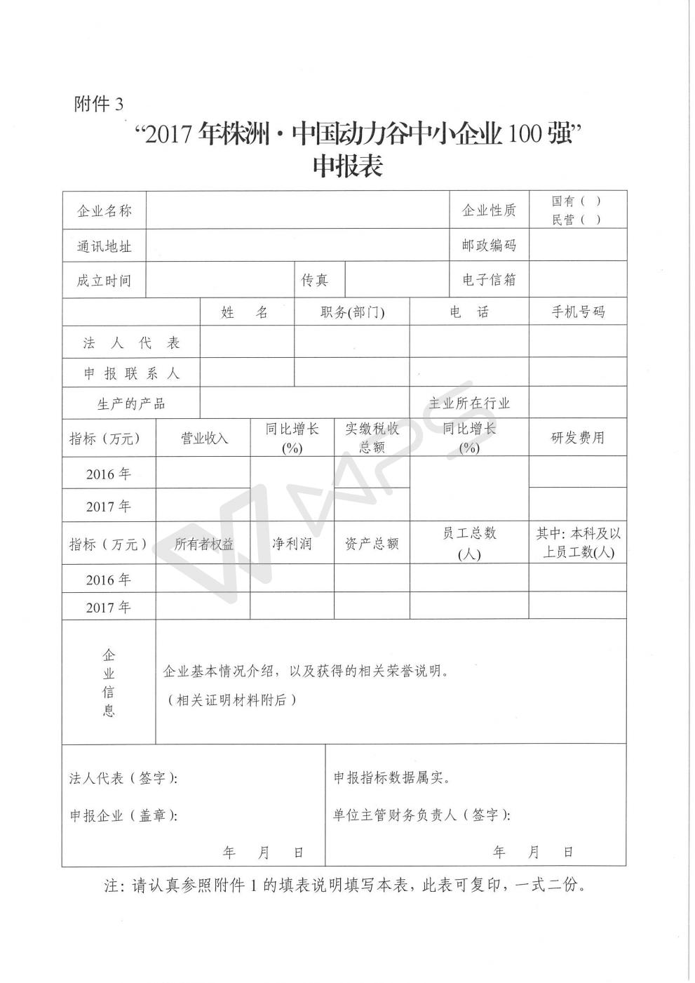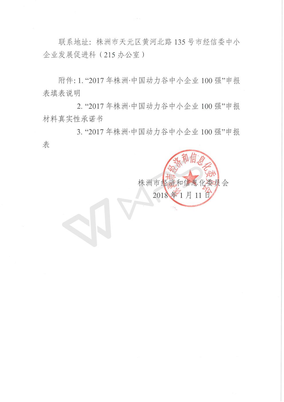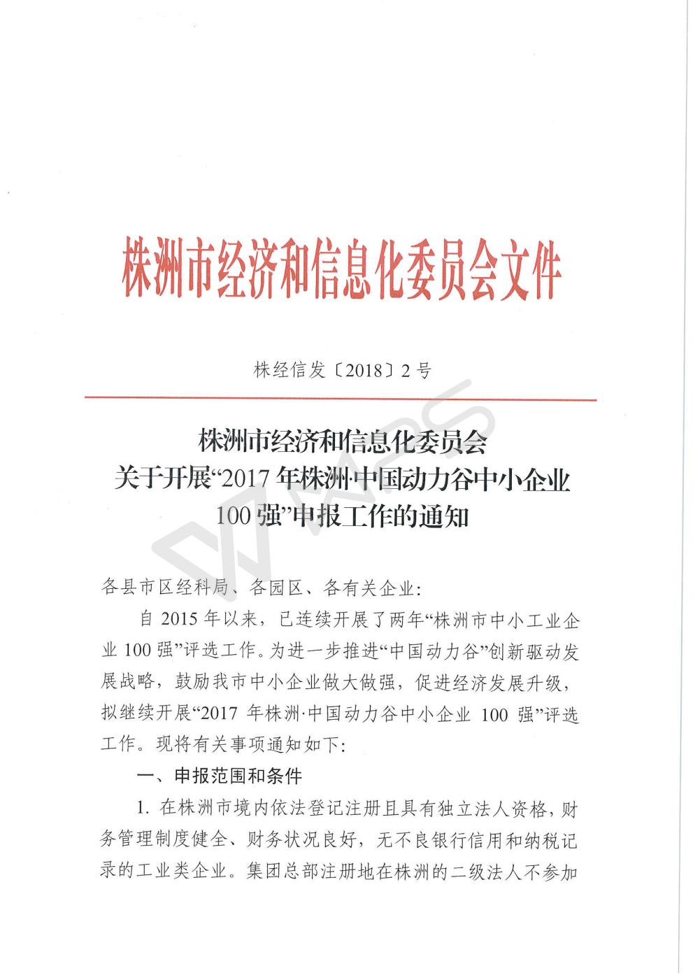 关于开展“2017年株洲·中国动力谷中小企业100强”申报工作的通知