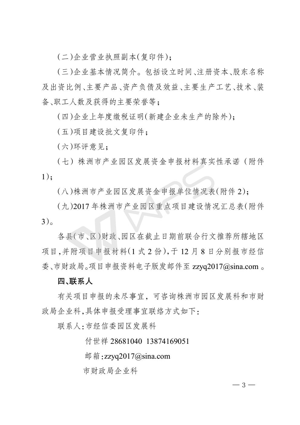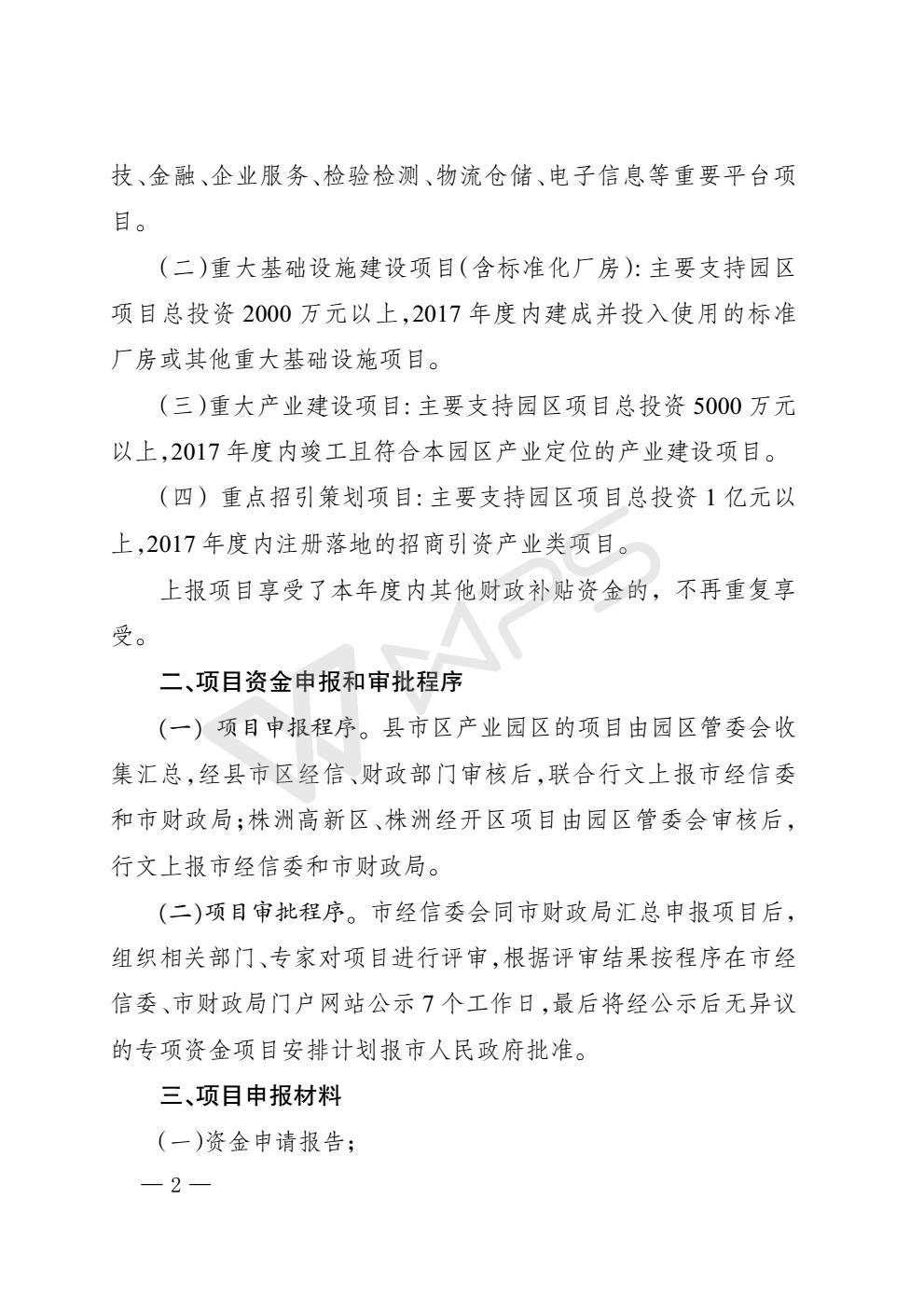 关于做好2017年度株洲市产业园区发展专项资金项目申报工作的通知