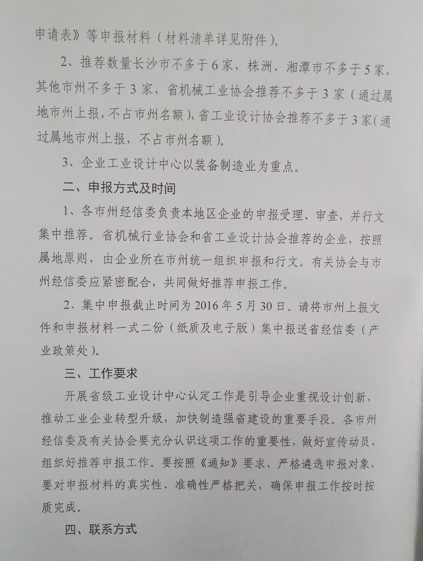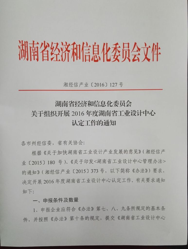 关于组织开展2016年度湖南省工业设计中心申报认定工作的通知