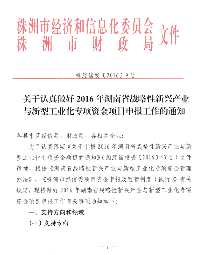 关于认真做好2016年湖南省战略性新兴产业与新型工业化专项资金项目申报工作的通知