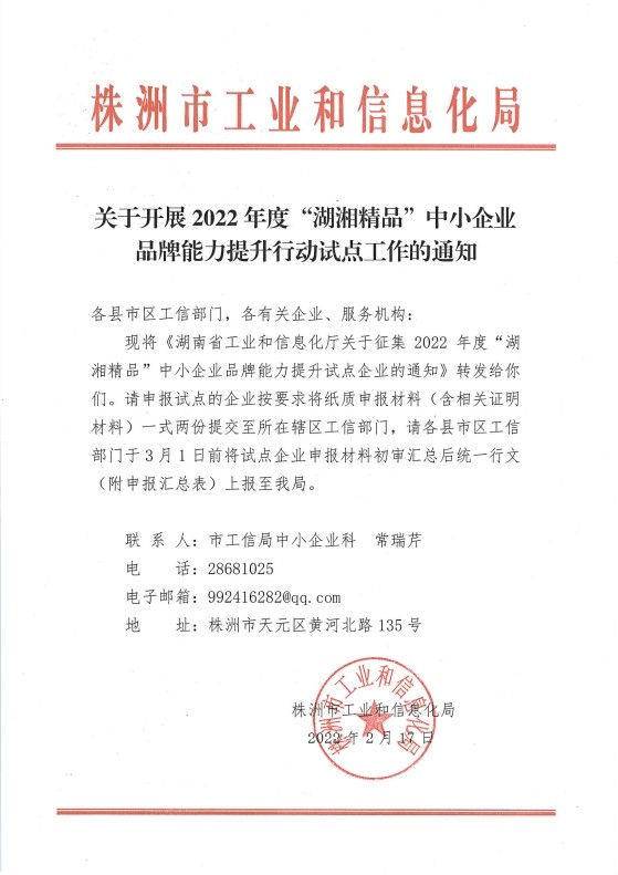 关于开展2022年度“湖湘精品”中小企业品牌能力提升行动试点工作的通知
