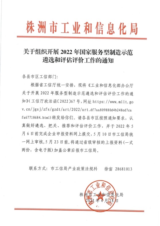 湖南省工业和信息化厅《关于组织开展2022年国家服务型制造示范遴选和评估评价工作的通知