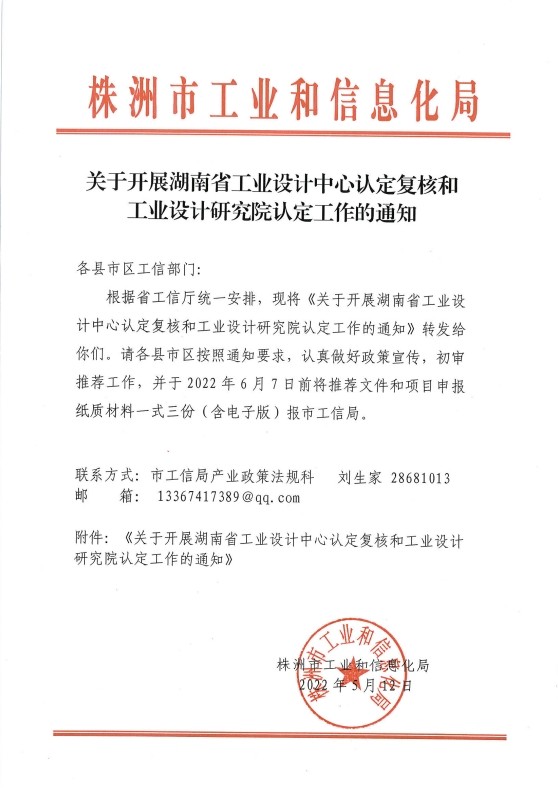 关于开展湖南省工业设计中心认定复核和工业设计研究院认定工作的通知