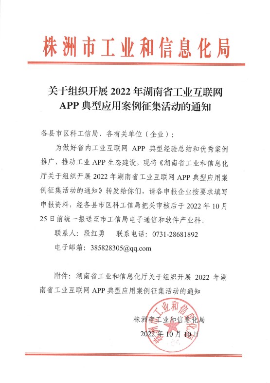 关于组织开展2022年湖南省工业互联网APP典型应用案例征集活动的通知