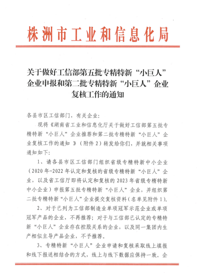 关于做好工信部第五批专精特新“小巨人”企业申报和第二批专精特新“小巨人”企业复核工作的通知