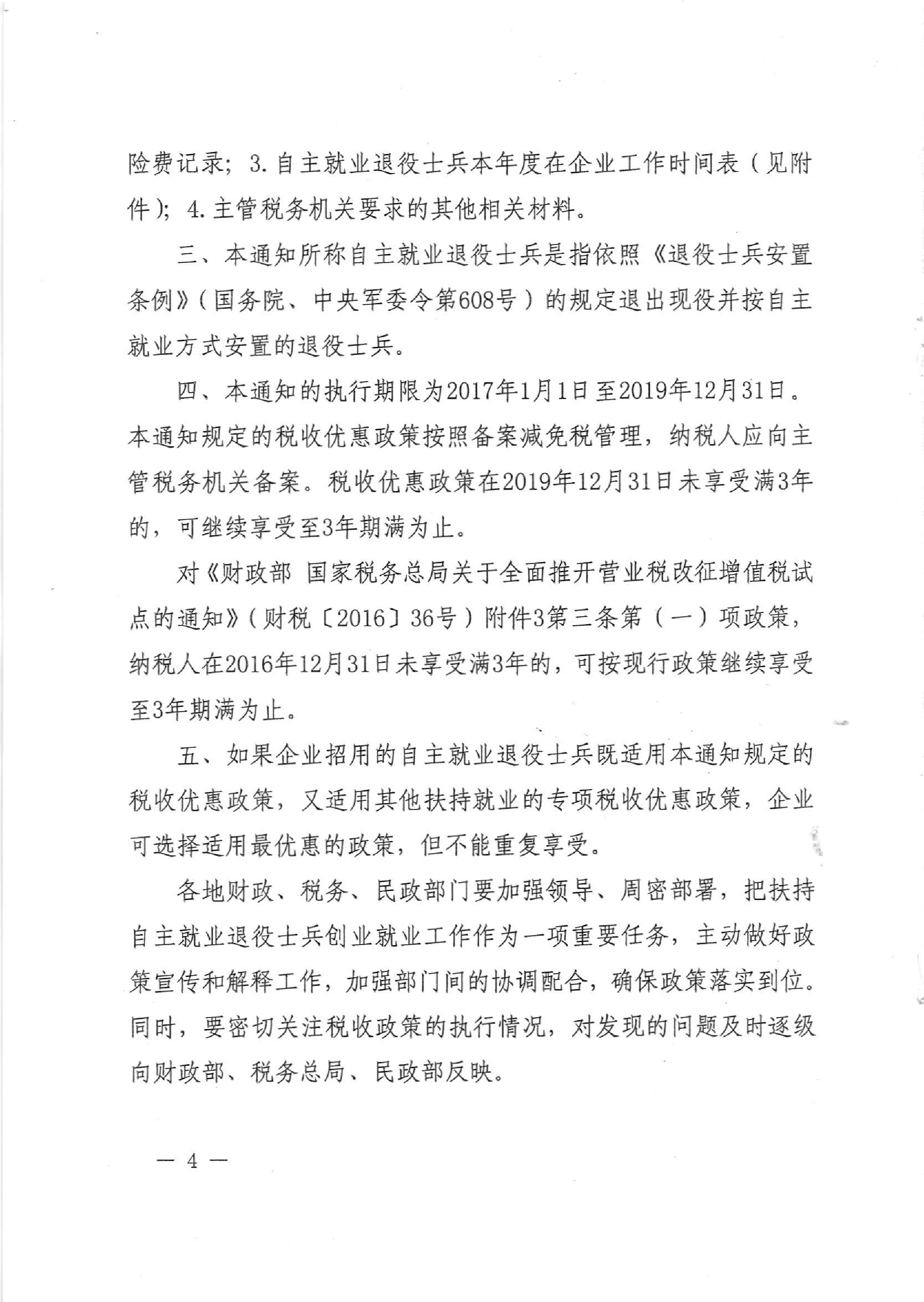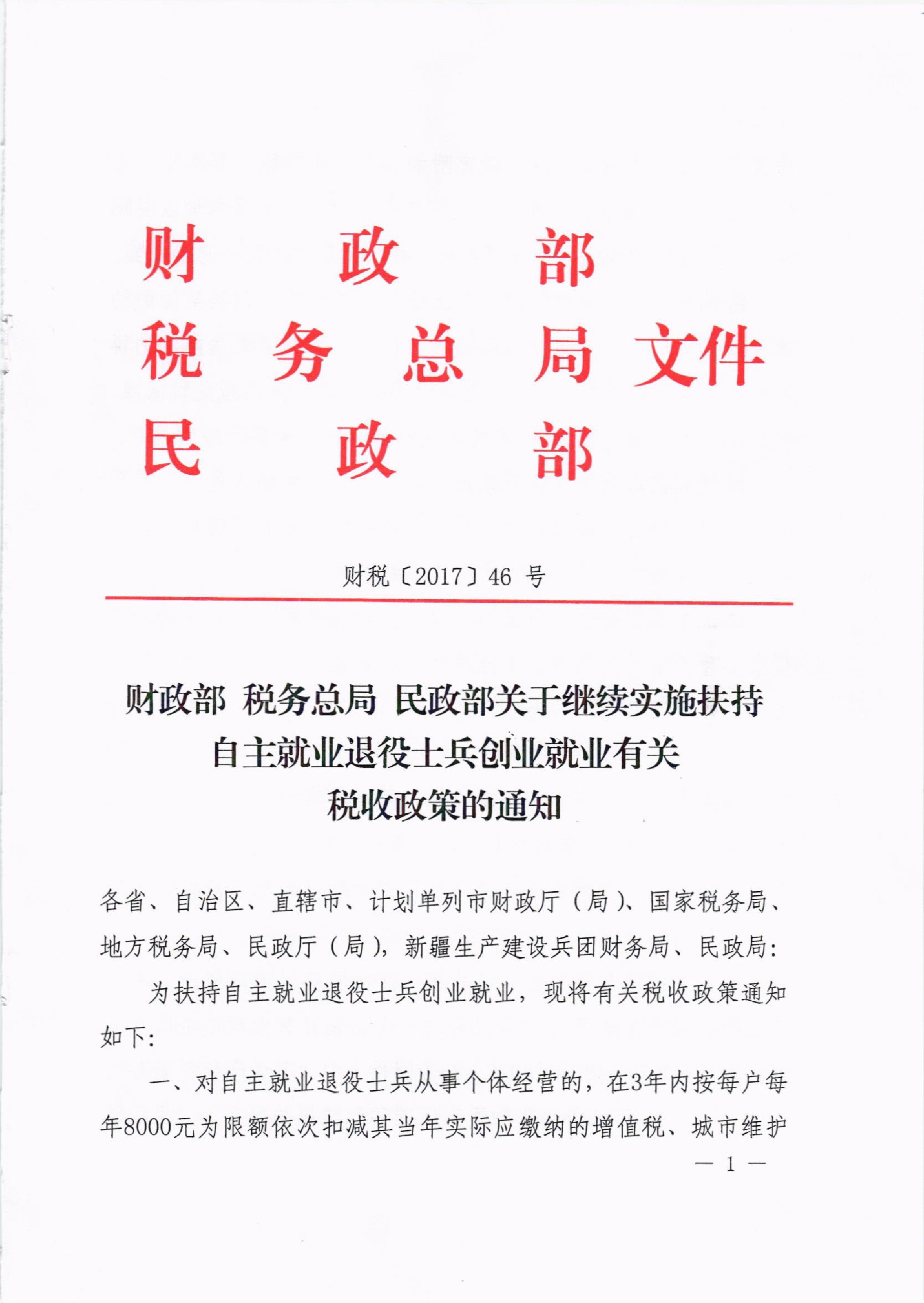 财政部 国家税务总局 民政部关于继续实施扶持自主就业退役士兵创业就业有关税收政策的通知