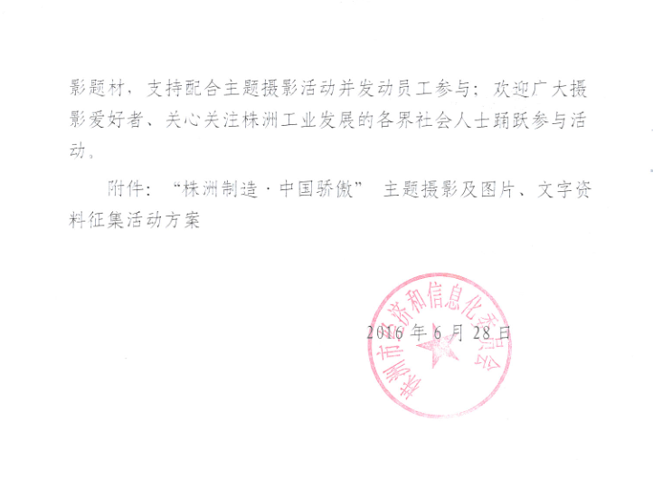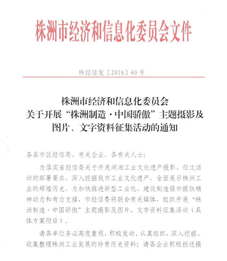 关于开展“株洲制造•中国骄傲”主题摄影及图片、文字资料征集活动的通知