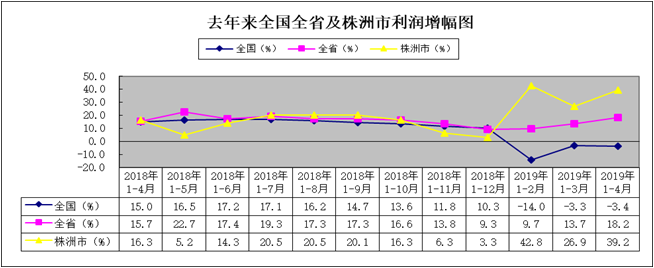 2019年1-4月株洲市规模工业企业经济效益持续向好