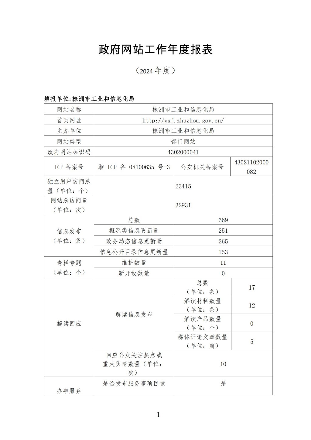 株洲市工业和信息化局2024年度政府网站工作年度报表